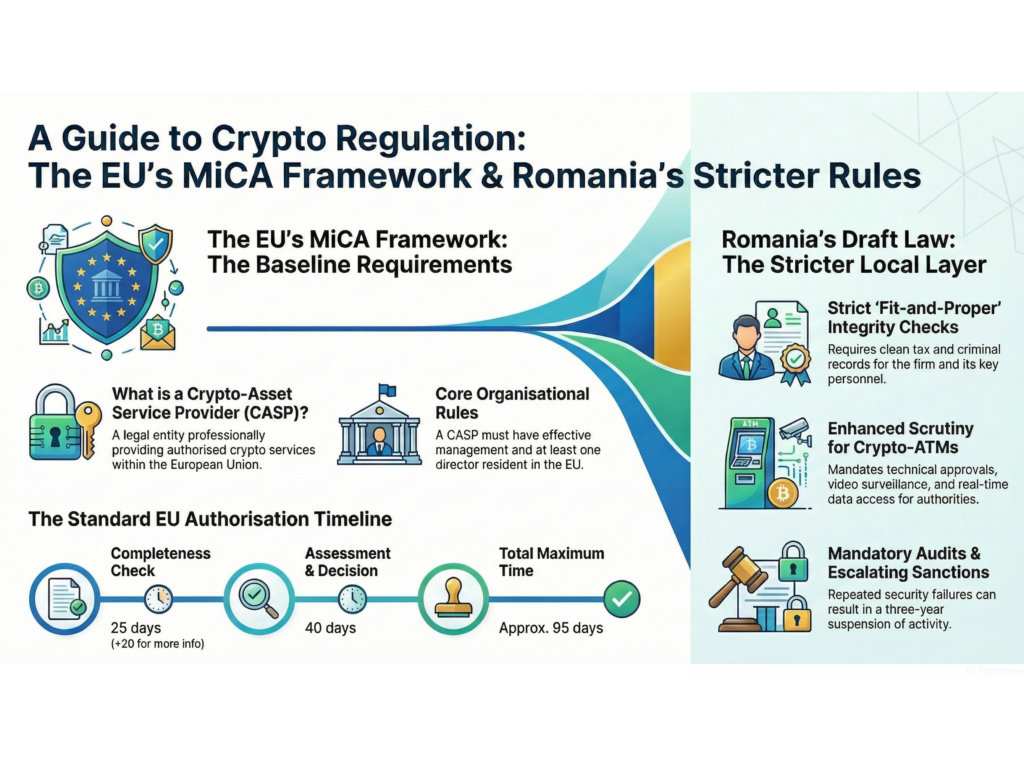 Based on the last public debate on the romanian legal frame, several structural and practical concerns regarding the proposed Romanian framework were highlighted, particularly in relation to the concentration of supervisory powers, limited investor protection mechanisms, and an unclear and potentially rigid transitional regime. Market participants also pointed to excessive bureaucracy, disproportionate sanctions, unclear tax considerations, and a potential competitive imbalance between local and international operators. Overall, the feedback suggests that, unless further clarified and streamlined, the current approach may create barriers to market entry and development rather than effectively supporting a functional and competitive crypto ecosystem. Until now, no further version of the legal frame was made public.